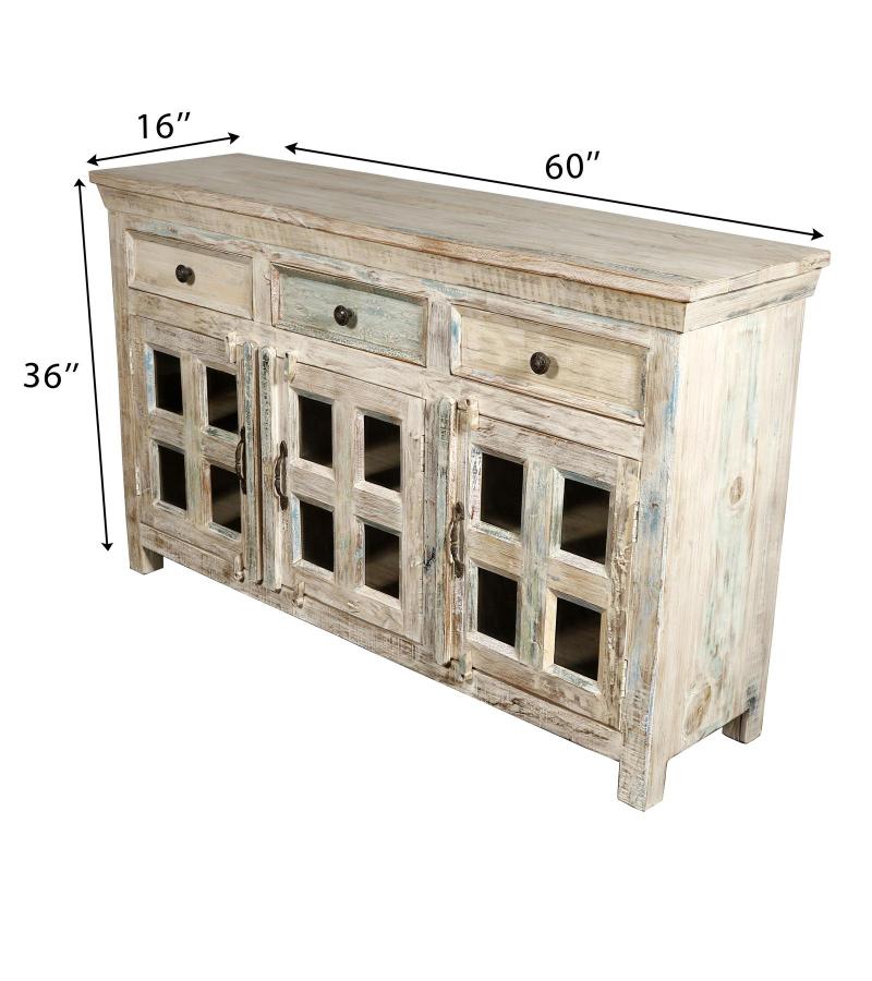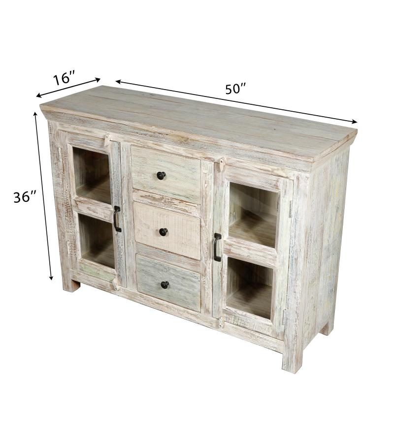 WOODEN 3 DRW GLASS SIDEBO...