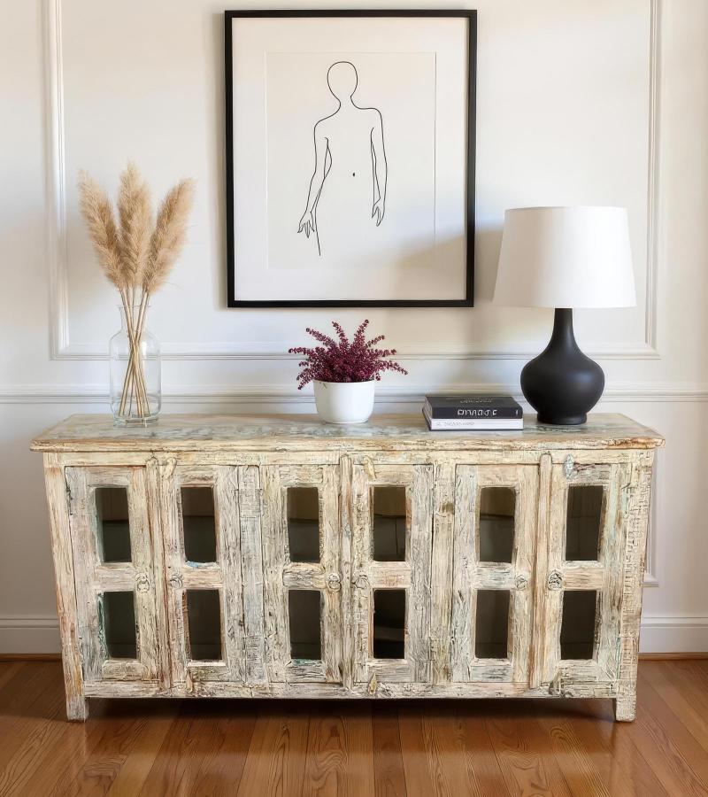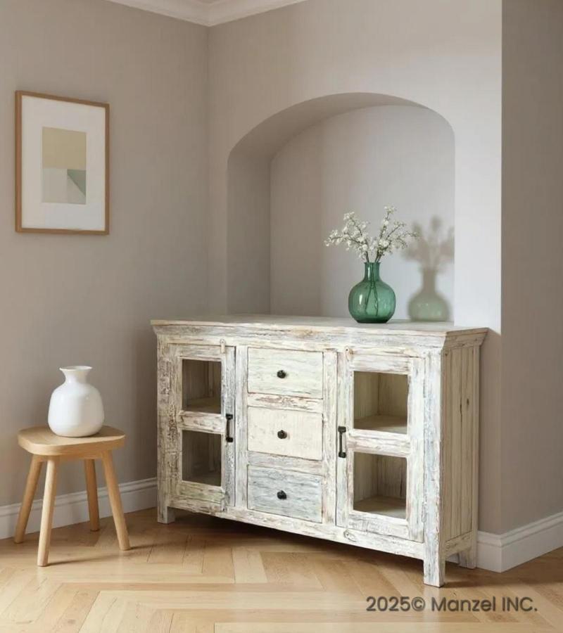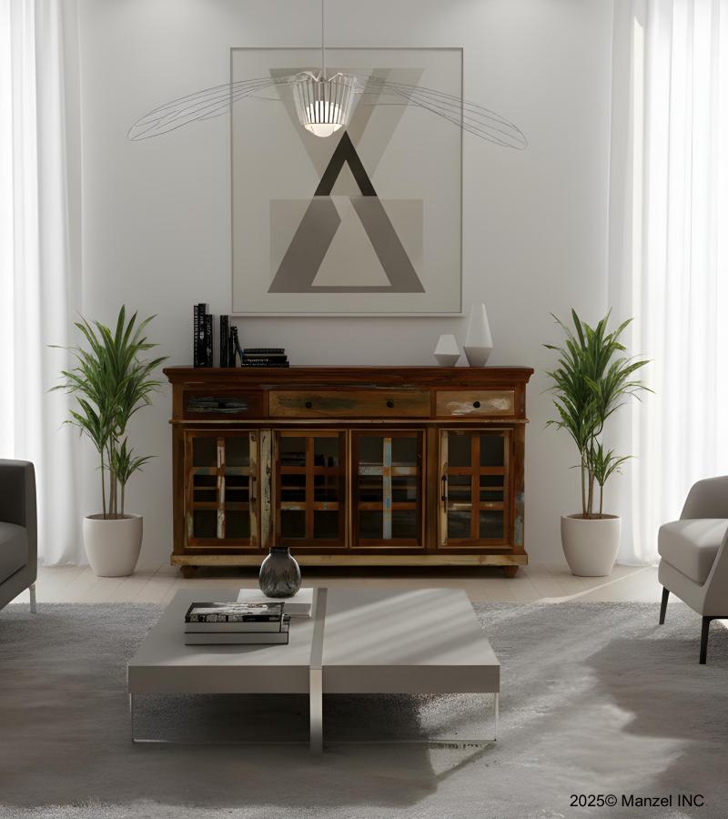 WOODEN GLASS DOOR SIDEBOA...