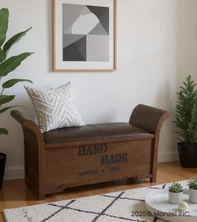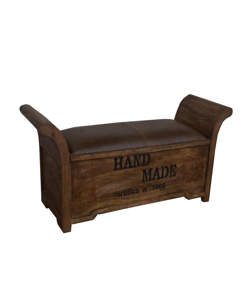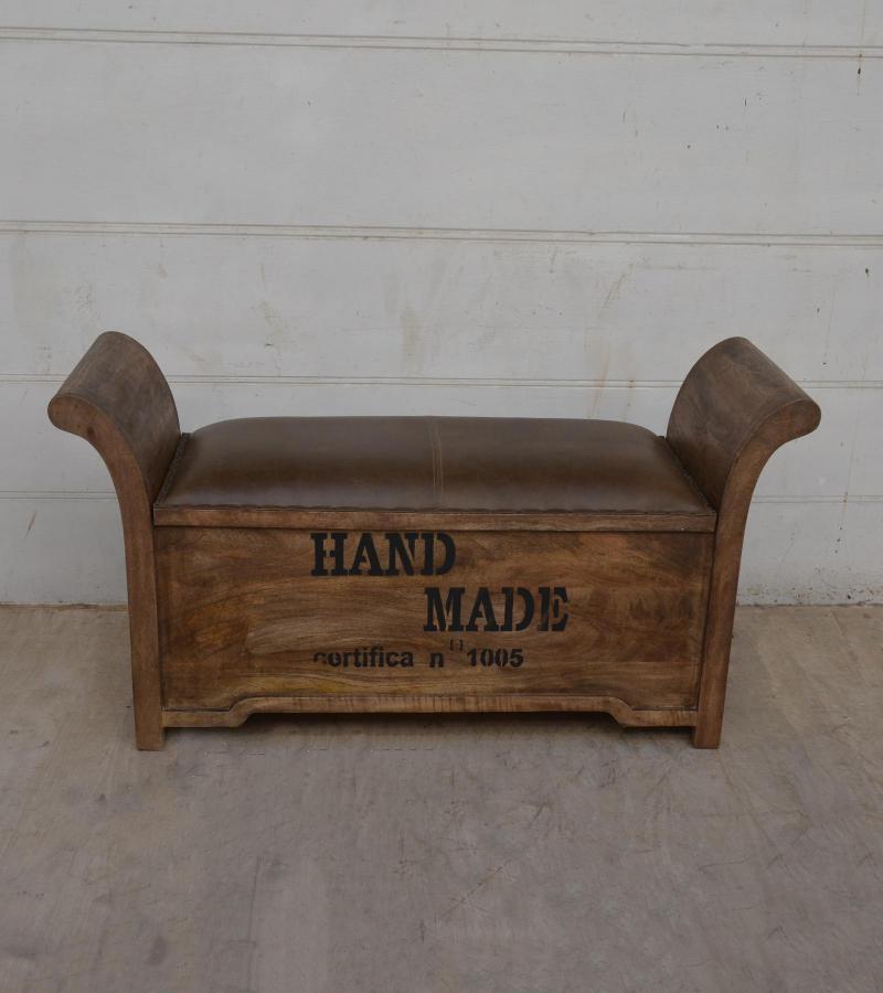 SOLID WOOD & LEATHER BENC...